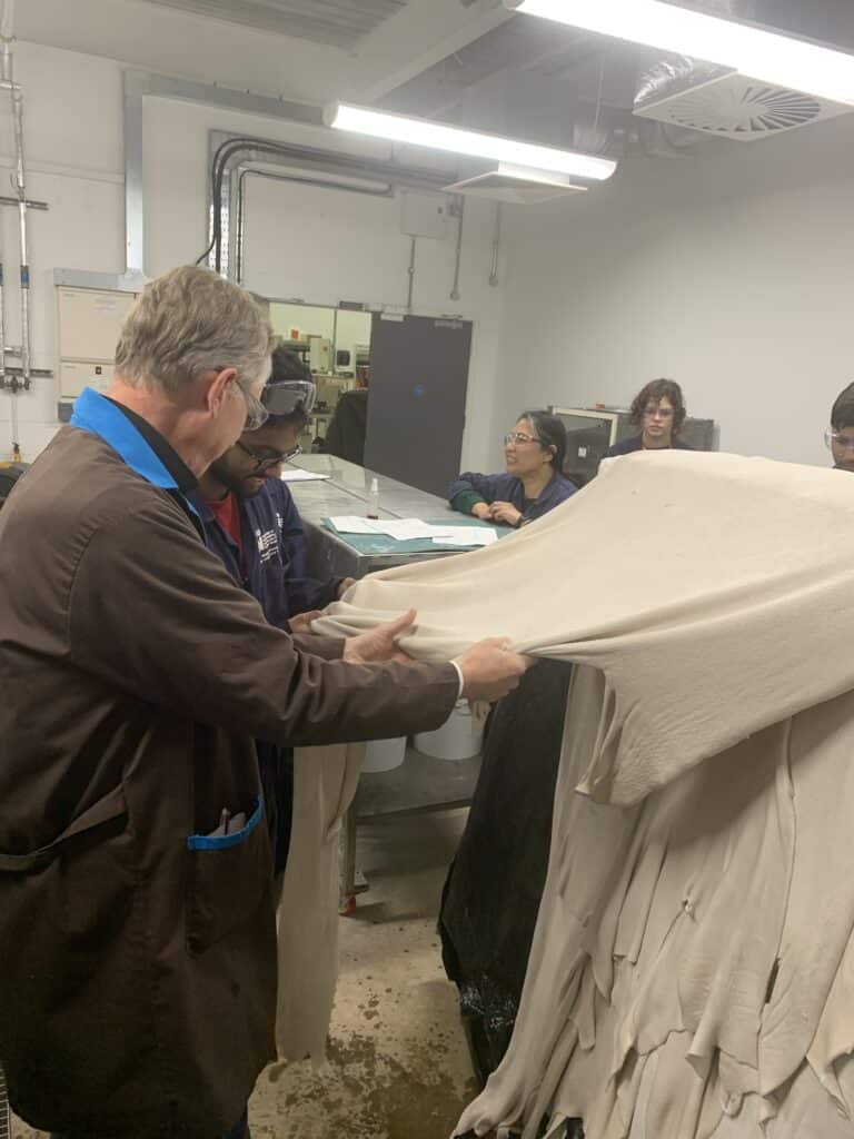 Our colleagues Craig Munro and Dirick von Behr spent a week at the University of Northampton, Institute for Creative Leather Technologies to educate the next generation about how to tan leather with Zeology. It was educational and fun! Interesting for you Discover more news Transparency in leather tanning: Smit & Zoon shares the science of sustainable new tanning agent Today Smit & Zoon is airing two films about the science and chemistry about their new sustainable tanning agent Zeology with the aim to inspire leather technicians, tanneries, leather manufacturers, brands and designers. Royal Smit & Zoon supports Kyiv National University of Technologies and Design Royal Smit & Zoon has supported the Kiev National University of Technologies and Design with renovating their educational scientific laboratory "Expertise in Leather & Fur". The updated laboratory is now open for classes. Queen Máxima visits Smit & Zoon in Weesp We are proud to announce that Her Majesty Queen Máxima will be visiting Smit & Son in Weesp on Wednesday afternoon, 26 May. The reason for the visit is the 200th anniversary of our company. More news Go to all news articles Discover Stay informed Receive the latest company news and industry updates Subscribe to our newsletter Share this: