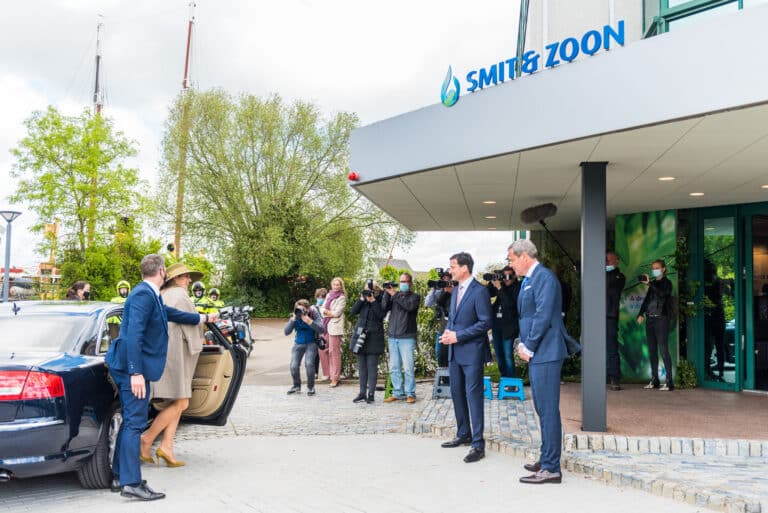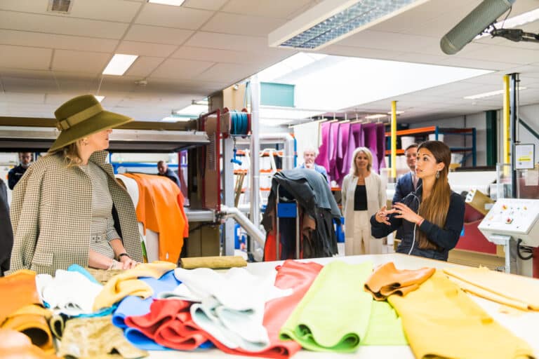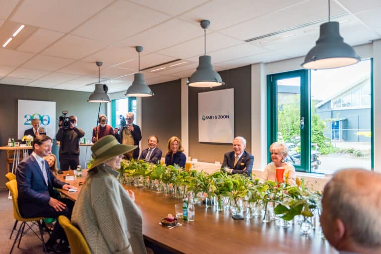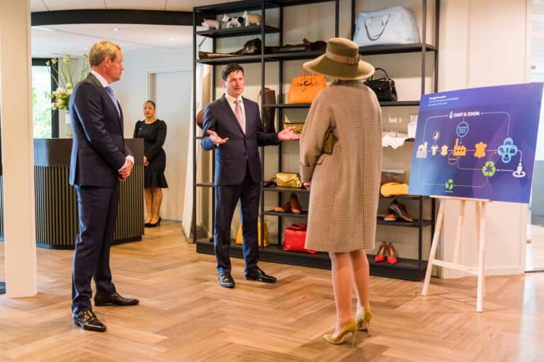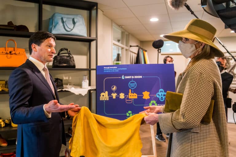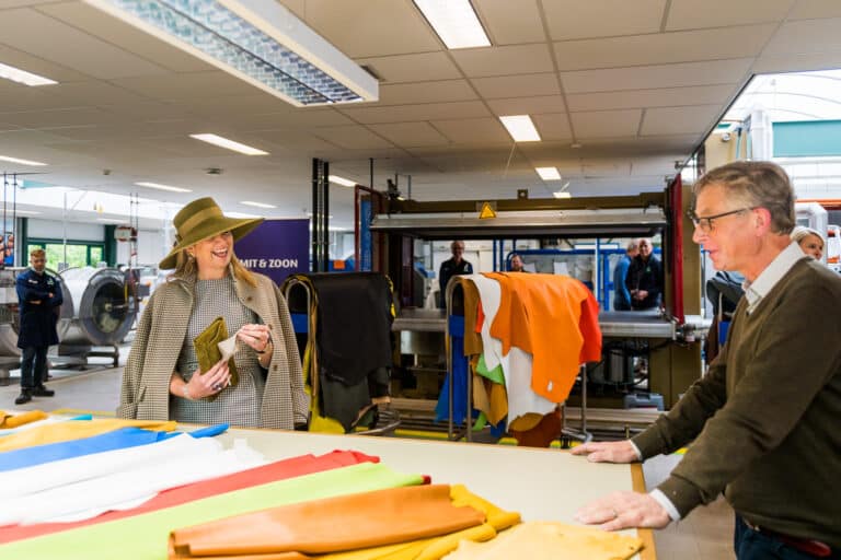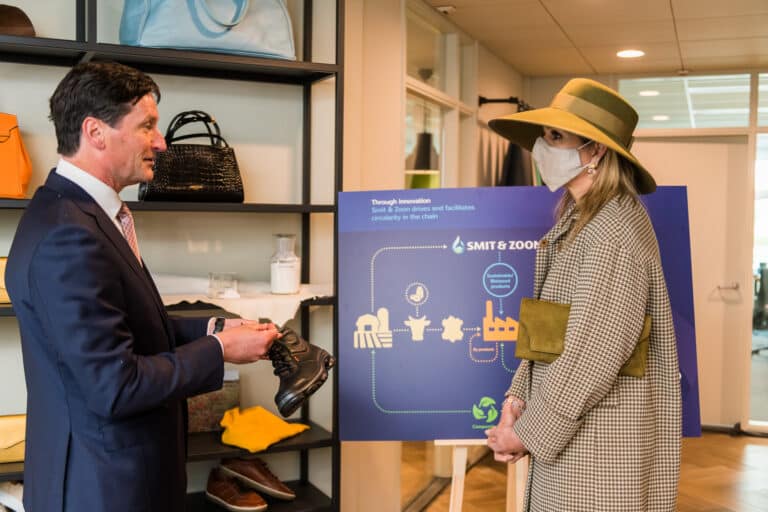 Visit Queen Máxima The celebrations around our 200 Year Jubilee have only just begun, but one of the absolute highlights has already taken place. We have been honoured to receive a visit from Her Majesty Queen Máxima to our company in Weesp on Wednesday afternoon, 26th May. It was a highly pleasurable meeting where we gave Queen Máxima a tour of our premises and discussed, among others, circularity in the leather value chain, the importance of education and sharing knowledge, our innovation Zeology and of course 200 years of family tradition and entrepreneurship. Please enjoy the photos of this memorable afternoon. Photo’s of Queen Máxima’s visit to Smit & Zoon © Copyright pictures: Twycer / twycer.nl During the visit, distance was maintained and facemasks were used according to the Corona Protocol of Smit & Zoon and in agreement with the RVD. 200 Years Smit & Zoon For more information about our celebrations and company history please visit our special Jubilee page. 200 Years Smit & Zoon Interesting for you Discover more news Queen Máxima visits Smit & Zoon in Weesp We are proud to announce that Her Majesty Queen Máxima will be visiting Smit & Son in Weesp on Wednesday afternoon, 26 May. The reason for the visit is the 200th anniversary of our company. Hommy Diaz is the winner of the Design Challenge With his functional and fashionable slip on sneakers it was Hommy Diaz who got awarded the first place. Royal Smit & Zoon presents 2021 ESG Report Leather chemicals manufacturer Royal Smit & Zoon has published its Environment, Social, Governance (ESG) report for 2021, highlighting the company’s environmental and social performance. More news Go to all news articles Discover Stay informed Receive the latest company news and industry updates Subscribe to our newsletter Share this:
